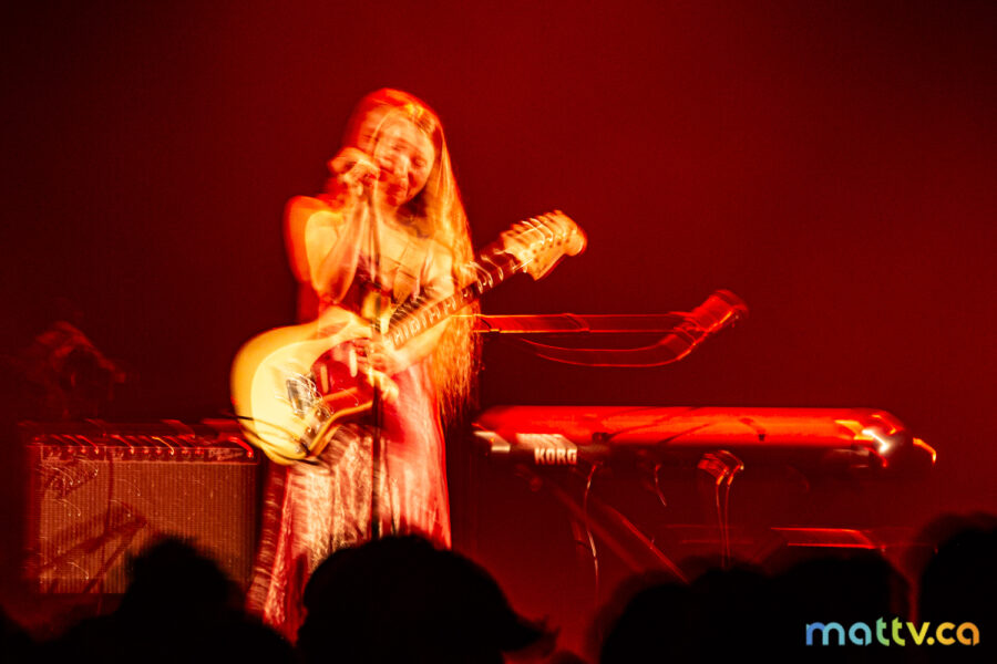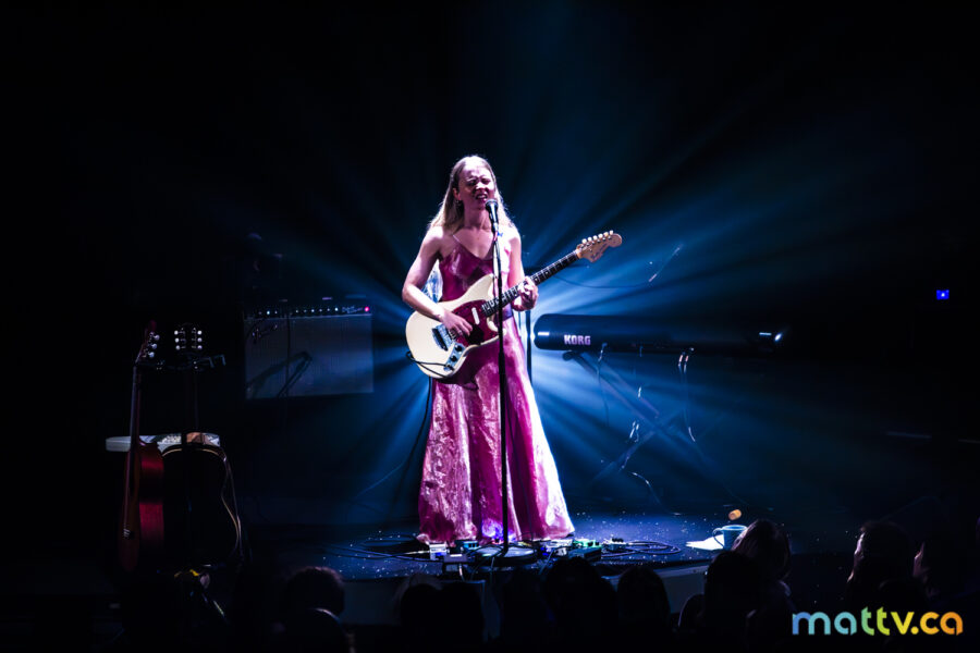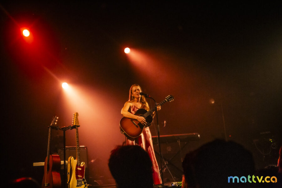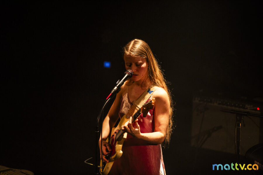 Dans la salle complète du Club Soda, le public l’admire avec des yeux amoureux. Elle entre sur scène, en silence, et installe rapidement une ambiance magique. Comme une fée, elle joue d’un air onirique, éraflant sa guitare qui accompagne ses mots, se présentant à nous comme une grande oratrice dans son style indie folk et alternatif.