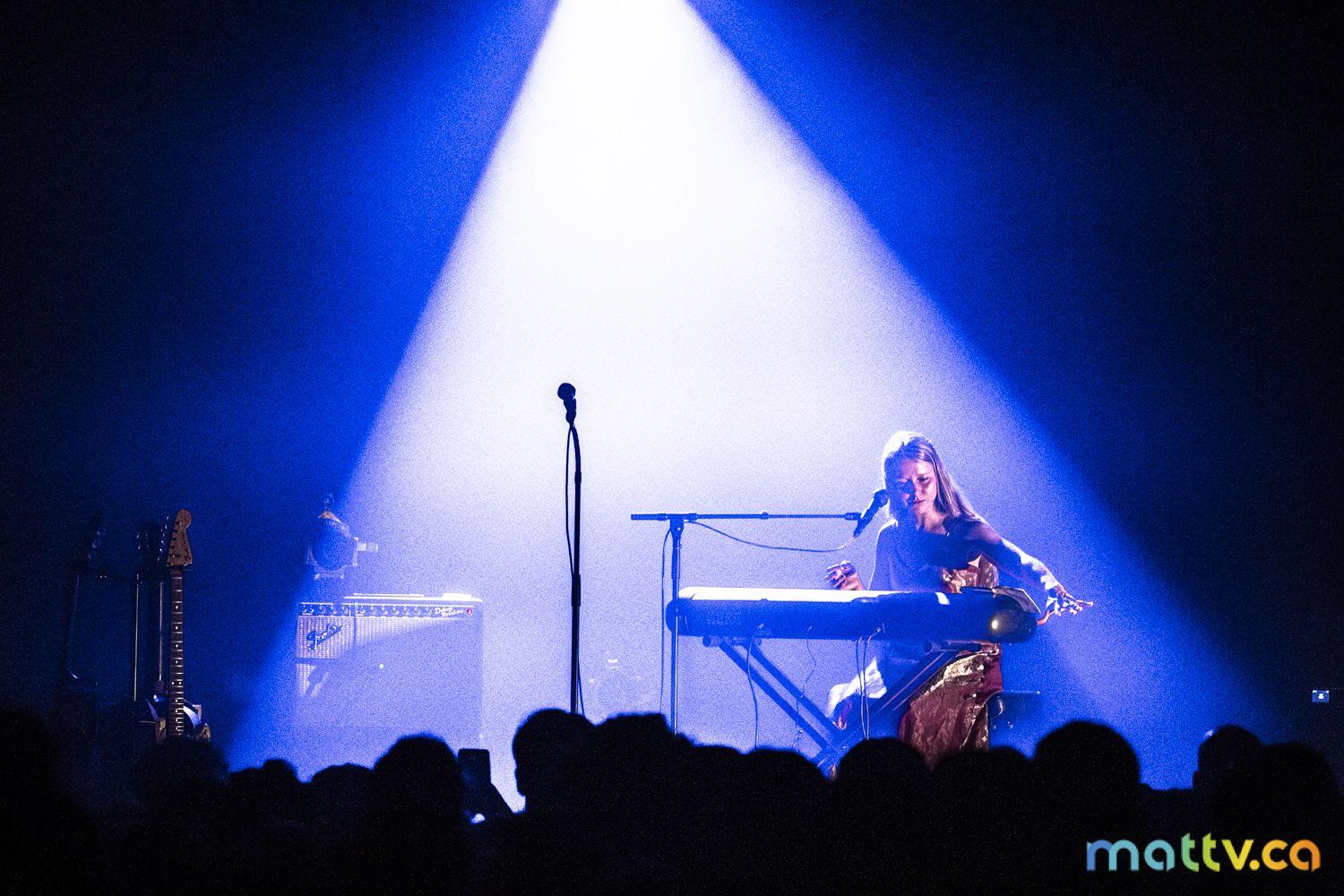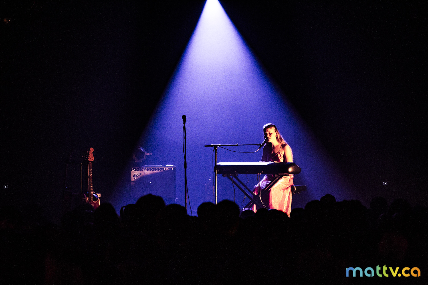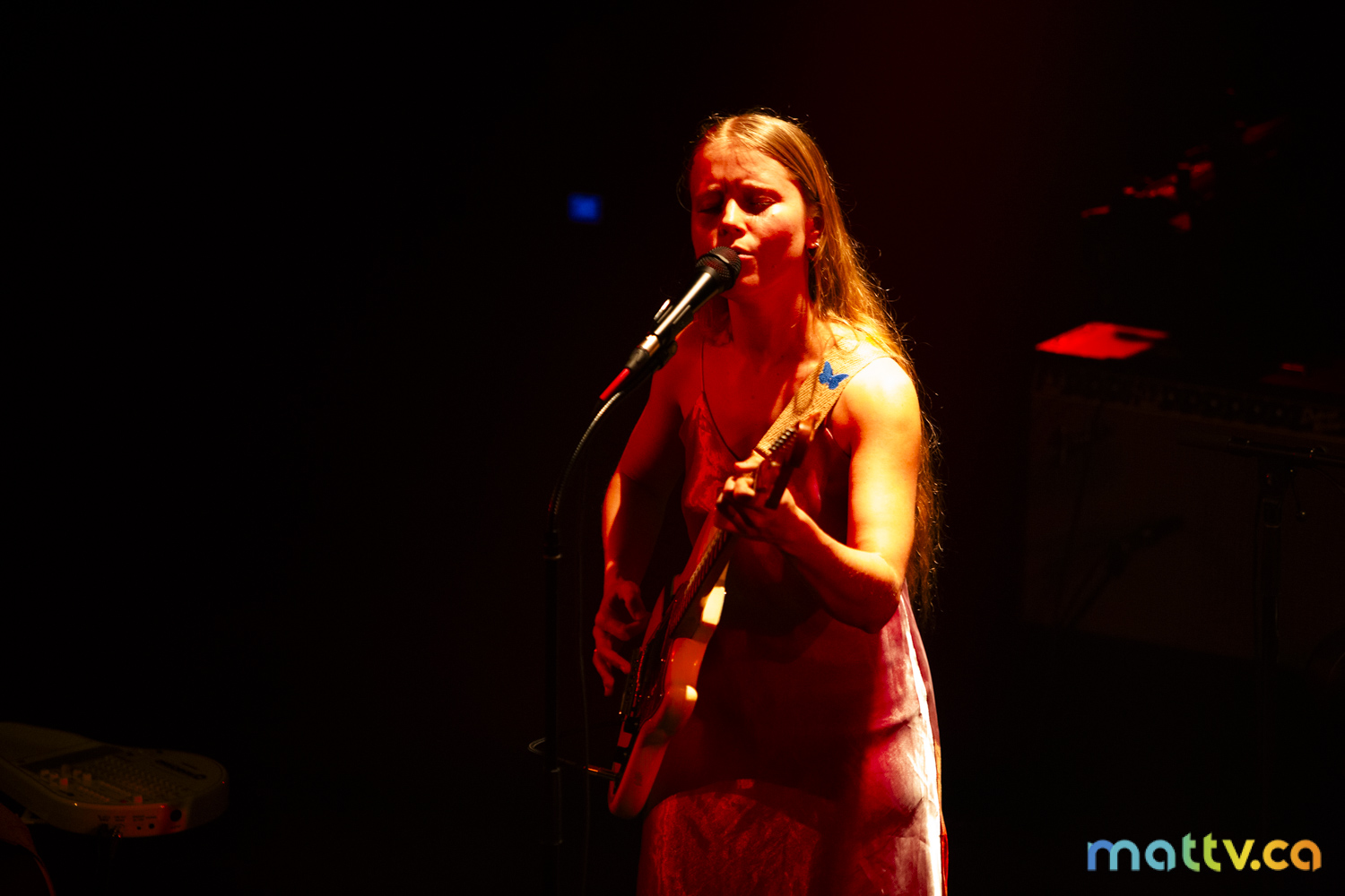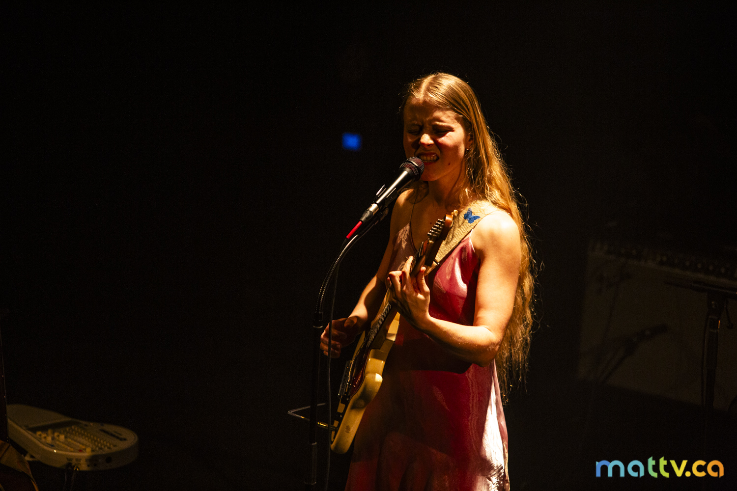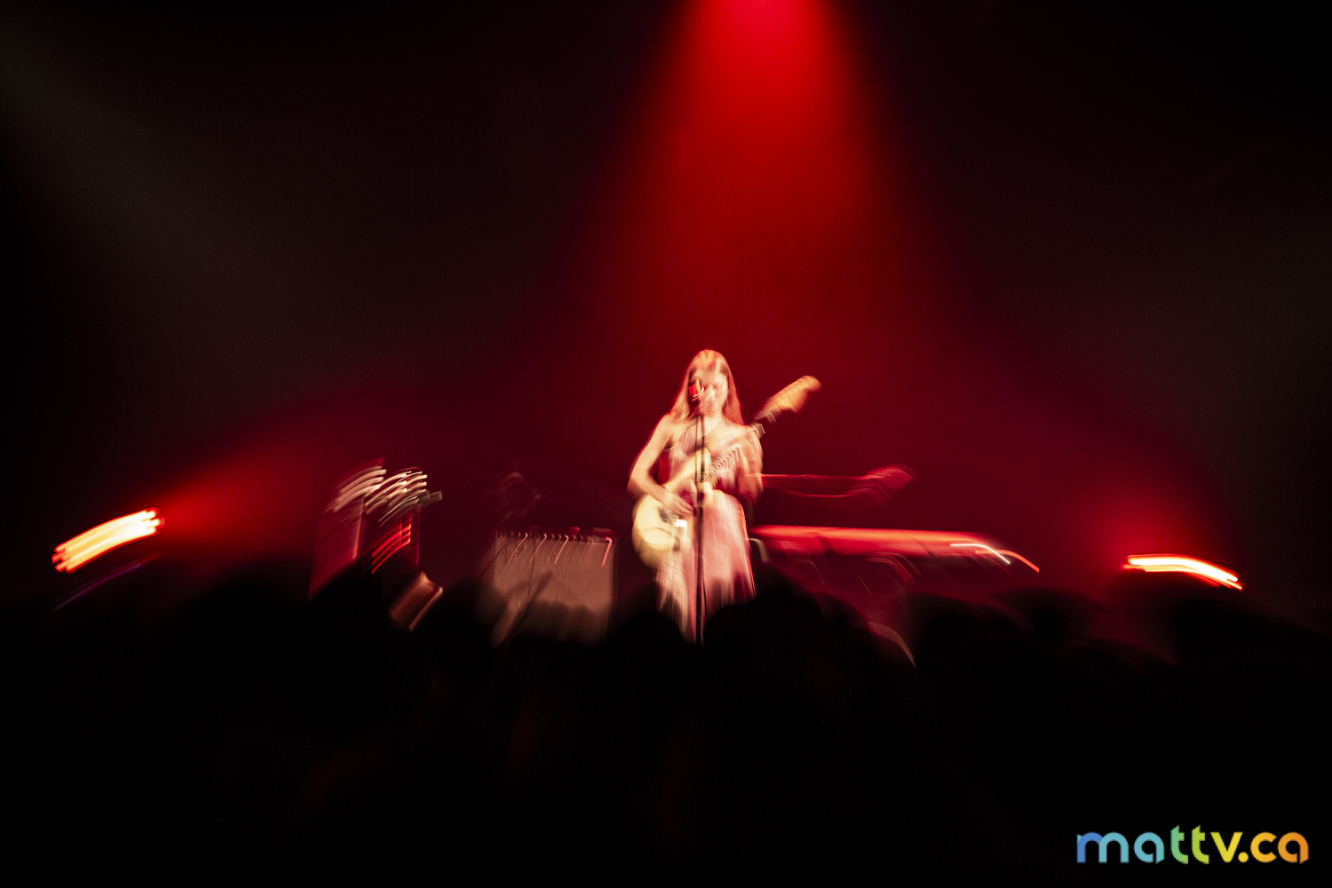 Dans la salle complète du Club Soda, le public l’admire avec des yeux amoureux. Elle entre sur scène, en silence, et installe rapidement une ambiance magique. Comme une fée, elle joue d’un air onirique, éraflant sa guitare qui accompagne ses mots, se présentant à nous comme une grande oratrice dans son style indie folk et alternatif.