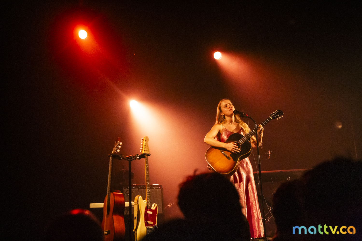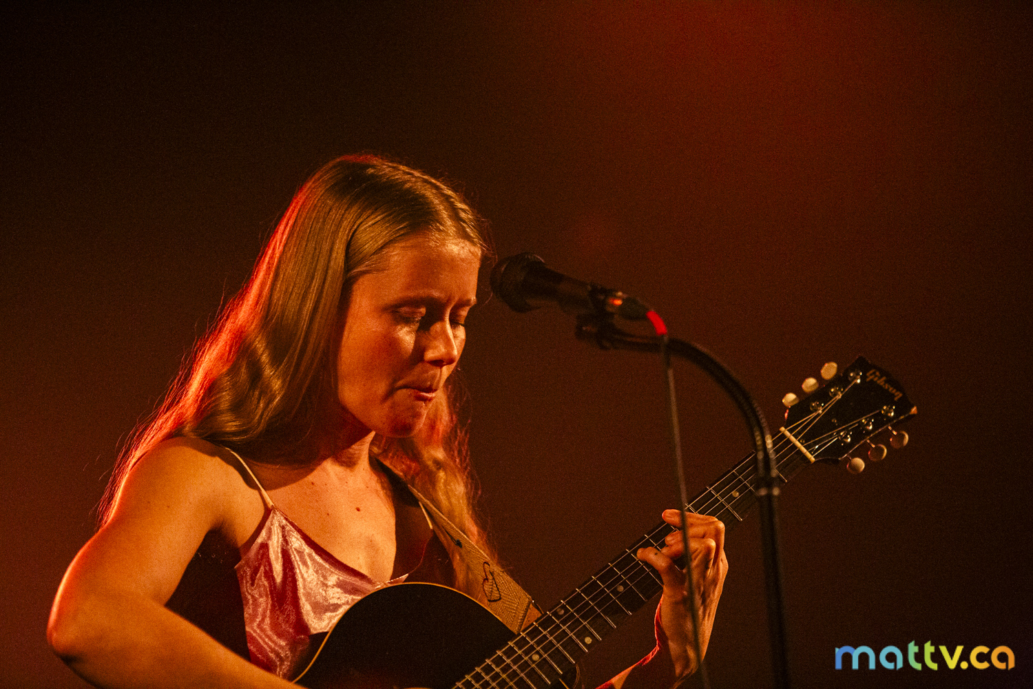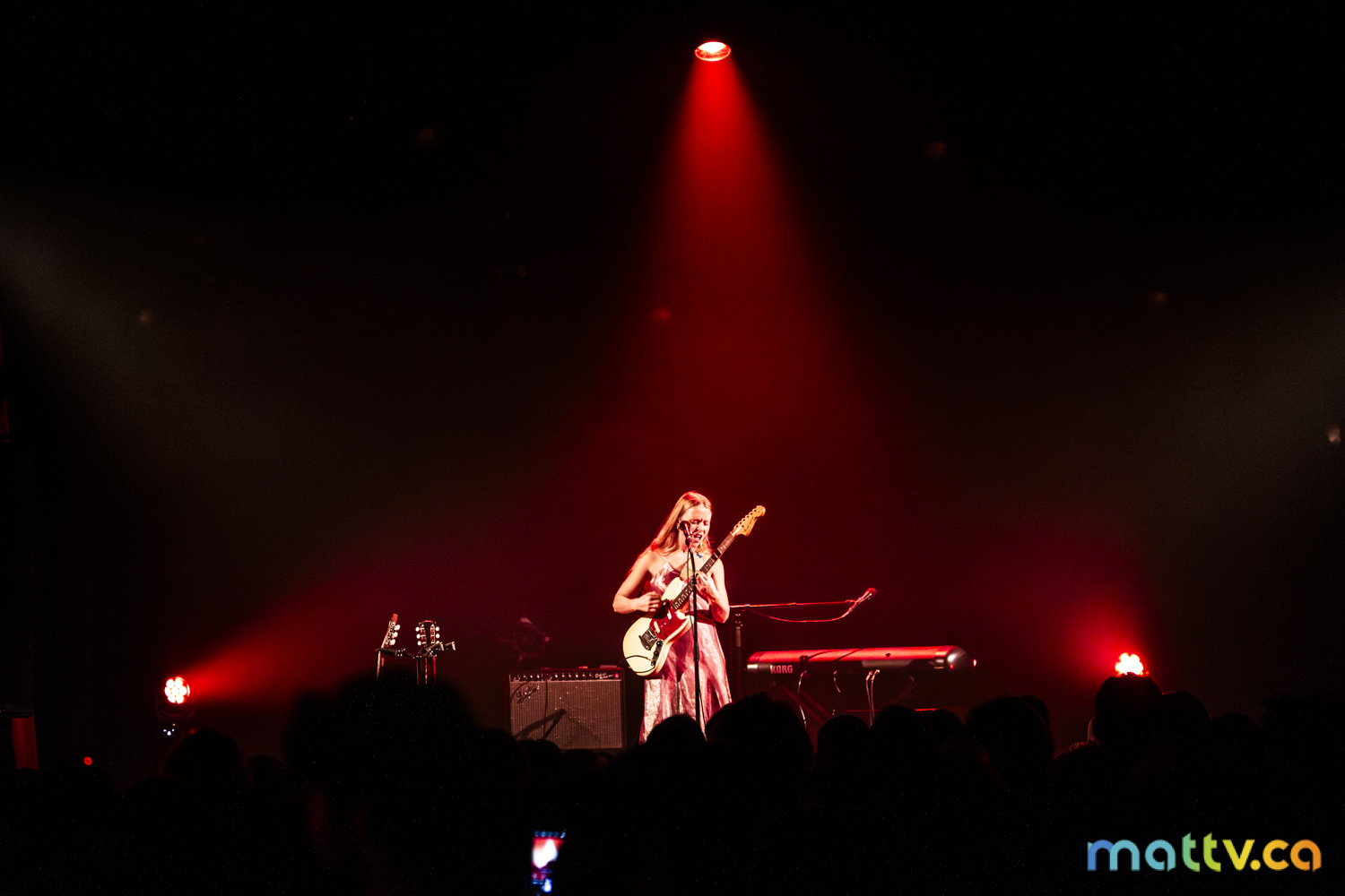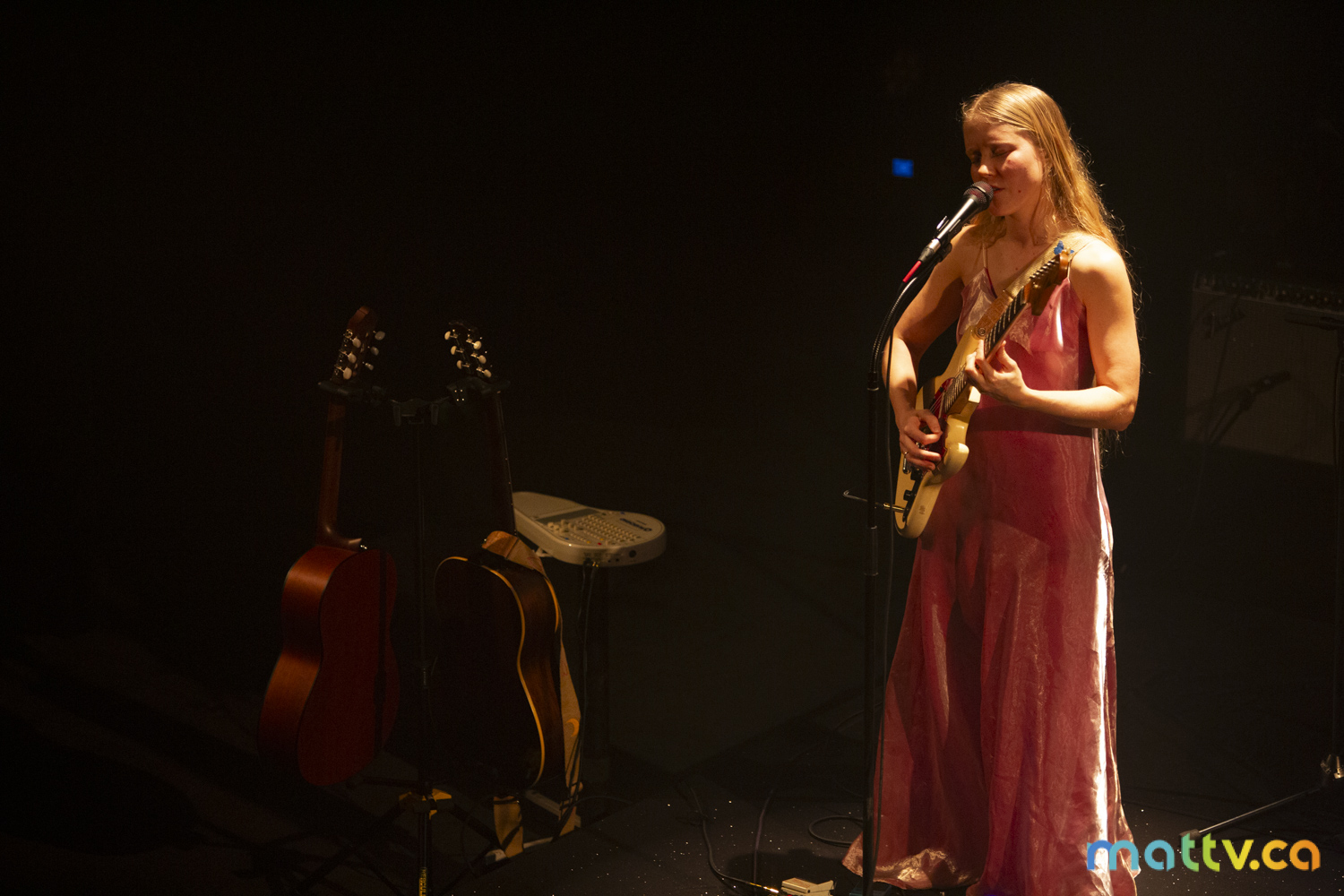 Dans la salle complète du Club Soda, le public l’admire avec des yeux amoureux. Elle entre sur scène, en silence, et installe rapidement une ambiance magique. Comme une fée, elle joue d’un air onirique, éraflant sa guitare qui accompagne ses mots, se présentant à nous comme une grande oratrice dans son style indie folk et alternatif.