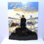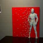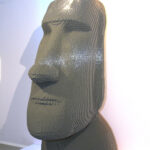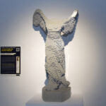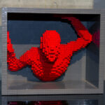 La visite débute dans une petite salle où joue en rafale une petite vidéo de Nathan expliquant ses débuts et d’où provient son inspiration. Et c’est aussi dans cette petite pièce que l’on observe notre première sculpture : une main grise qui pince une petite brique rouge. La visite n’est pas guidée par une trame audio expliquant chacune des œuvres. Chaque création a une fiche qui indique la dimension, le nombre de briques utilisées pour sa création et une courte description. Elle comporte aussi un code QR. Puisqu’il n’y a pas de temps alloué pour faire le tour, il est possible de revenir en arrière regarder une création qui nous a marqué.