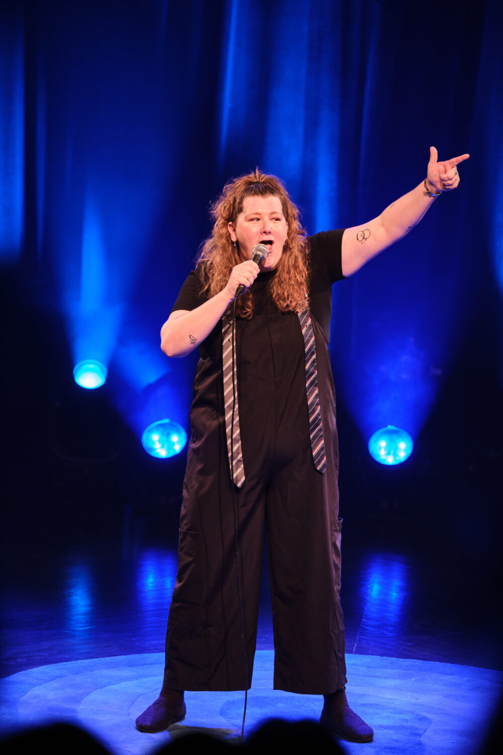 Dès les premières minutes, on sent que le spectacle a été minutieusement construit. Coco Belliveau ne se contente pas d’enchaîner les blagues ; elle bâtit son heure comme une véritable pyramide. Chaque numéro ajoute une brique, chaque anecdote élève la structure, jusqu’à atteindre un sommet d’intensité comique. Plus on avance, plus les éclats de rire se font francs, spontanés, incontrôlables.