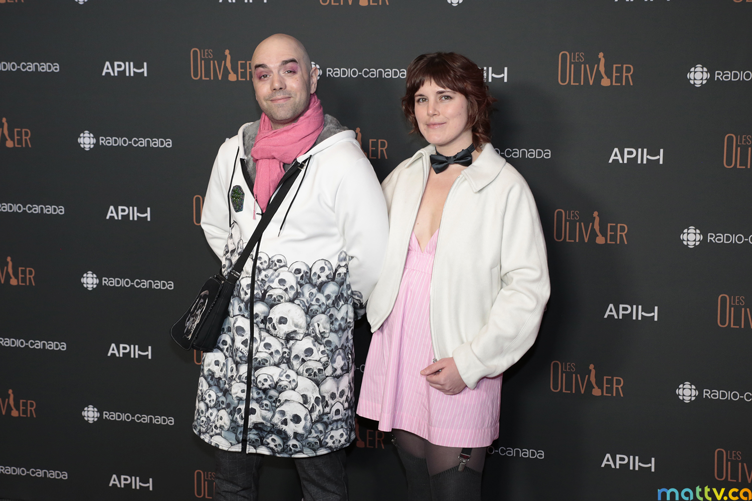 Mike : Excité surtout. J’ai hâte de voir les surprises. C’est ça que j’aime du Gala Les Olivier. C’est de voir des niaiseries, Tu sais comme voir eux autres (Mike fait référence aux humoristes Maxime Gervais, Jo Cormier et Martin Lauzon, vêtus en détectives), tu sais, en personnages. J’aime vraiment ça voir le monde qui ne prennent pas ça au sérieux. Ça me met tout le temps mal à l’aise le monde trop fier de gagner un trophée. Mais de voir des épais comme eux autres, ça me rend extrêmement heureux.