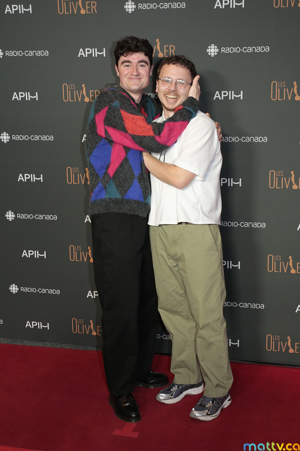 Mike : Excité surtout. J’ai hâte de voir les surprises. C’est ça que j’aime du Gala Les Olivier. C’est de voir des niaiseries, Tu sais comme voir eux autres (Mike fait référence aux humoristes Maxime Gervais, Jo Cormier et Martin Lauzon, vêtus en détectives), tu sais, en personnages. J’aime vraiment ça voir le monde qui ne prennent pas ça au sérieux. Ça me met tout le temps mal à l’aise le monde trop fier de gagner un trophée. Mais de voir des épais comme eux autres, ça me rend extrêmement heureux.