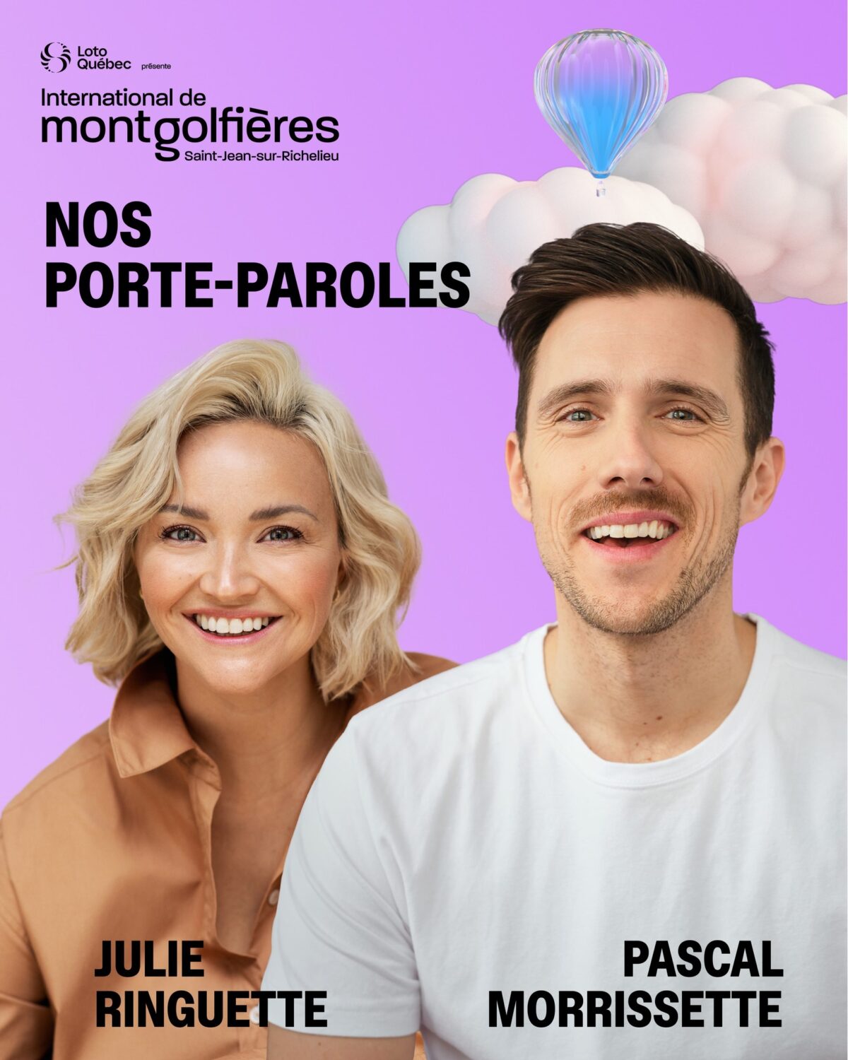 Mardi matin au Parc olympique, se tenait la conférence de presse dévoilant la programmation de la 43e édition de L’International de montgolfières de Saint-Jean-sur-Richelieu. L’enthousiasme se faisait sentir dès les premières minutes, porté entre autres par une température printanière précoce et par un sentiment de gratitude, sachant que la tempête de verglas annoncée devait frapper moins de 24 heures plus tard. Une chance inespérée. Et parlant de chance et de gratitude, l’équipe du festival a aussi eu le bonheur d’accueillir les porte-paroles qu’elle espérait, les premiers sur leur liste : Julie Ringuette et Pascale Morrissette.