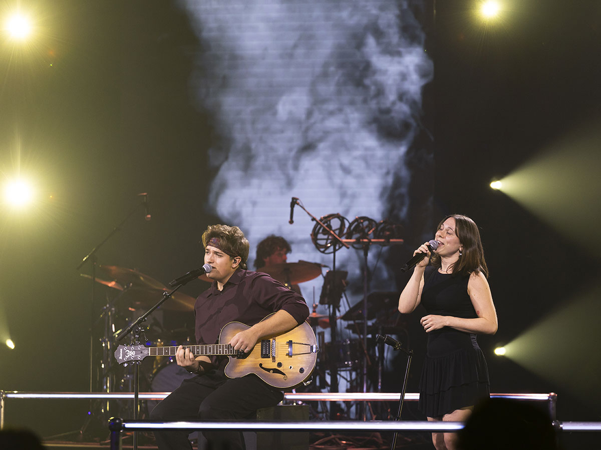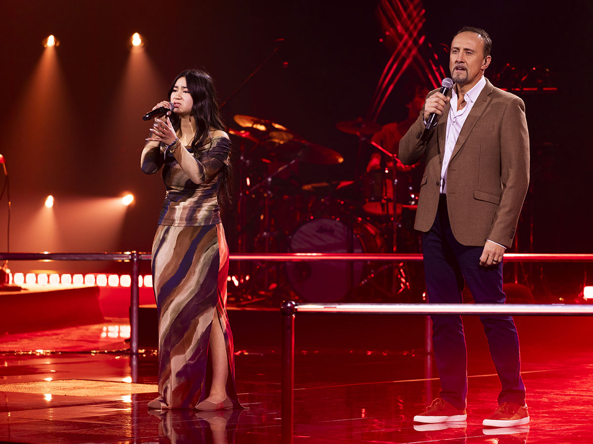 La soirée a débuté avec un pot-pourri de ce qui nous attend dans les prochaines semaines. On a entendu entre autres France D’Amour dire que « monter les numéros avec eux, c’est le bout le plus fun », alors qu’on a pu (re)découvrir l’esprit combatif de Mario Pelchat, qui a énoncé, en parlant de ses candidats et de l’étape des duels : « s’ils ont envie d’aller plus loin, c’est là qu’il faut tout donner ». La grande gagnante de la dernière édition de La Voix, Maude Cyr-Deschênes, est revenue fouler la scène du Studio MELS pour présenter la pièce Pardonne-moi, pardonne-nous avec Olivier Dion tirée de la comédie musicale Évangéline, dont ils sont tous deux les têtes d’affiche.