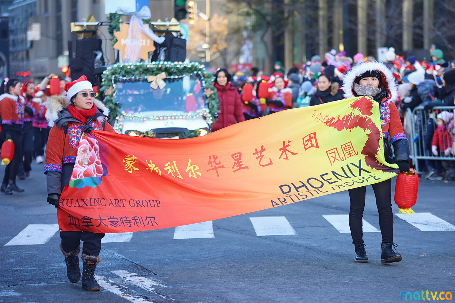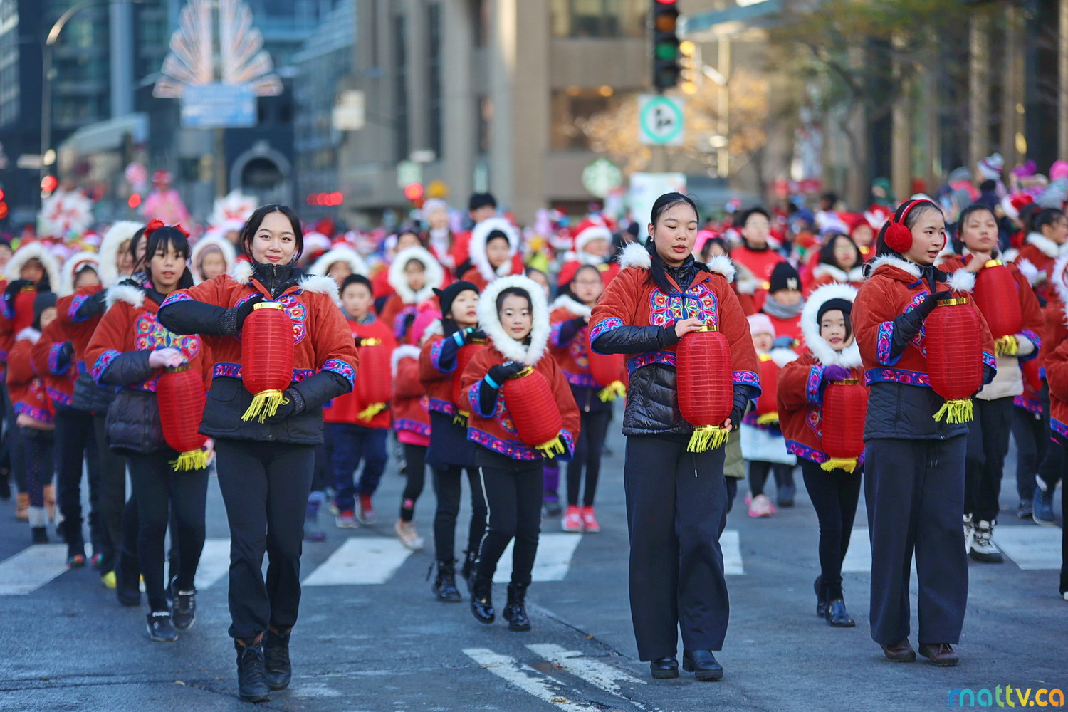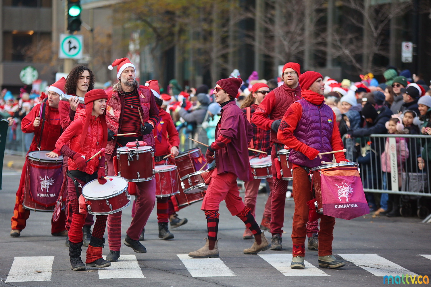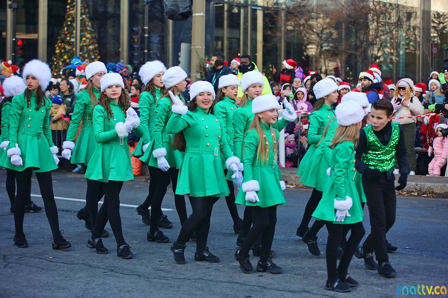 Dès notre arrivée, le centre-ville vibrait au rythme de la musique, des couleurs et de l’excitation générale. Un immense merci à Tim Hortons pour le chocolat chaud qui a ajouté une touche de réconfort, le parfait réconfort pour patienter avant le début des festivités ! et à Montréal centre-ville pour les chapeaux du Père Noël offerts.