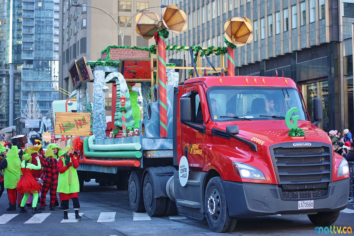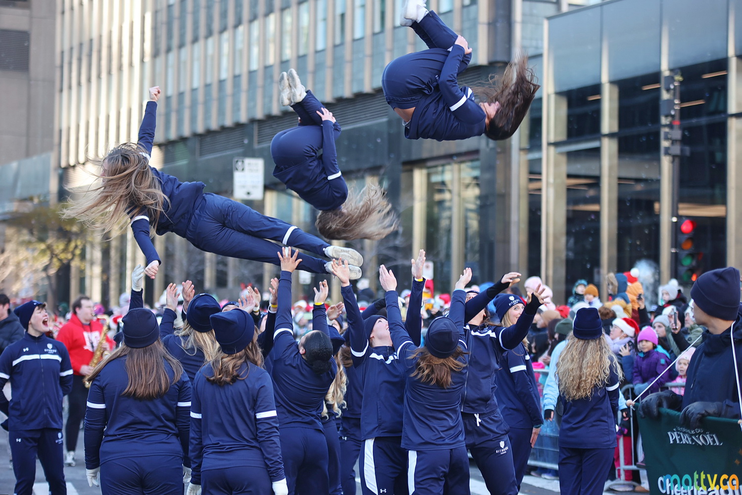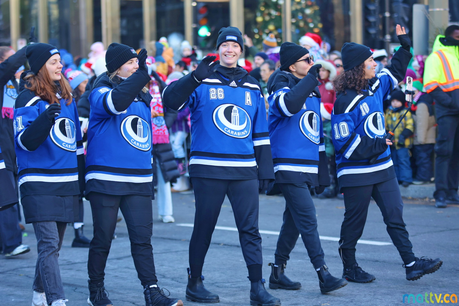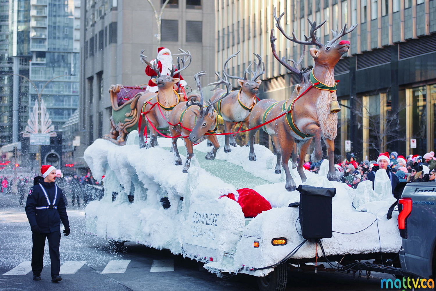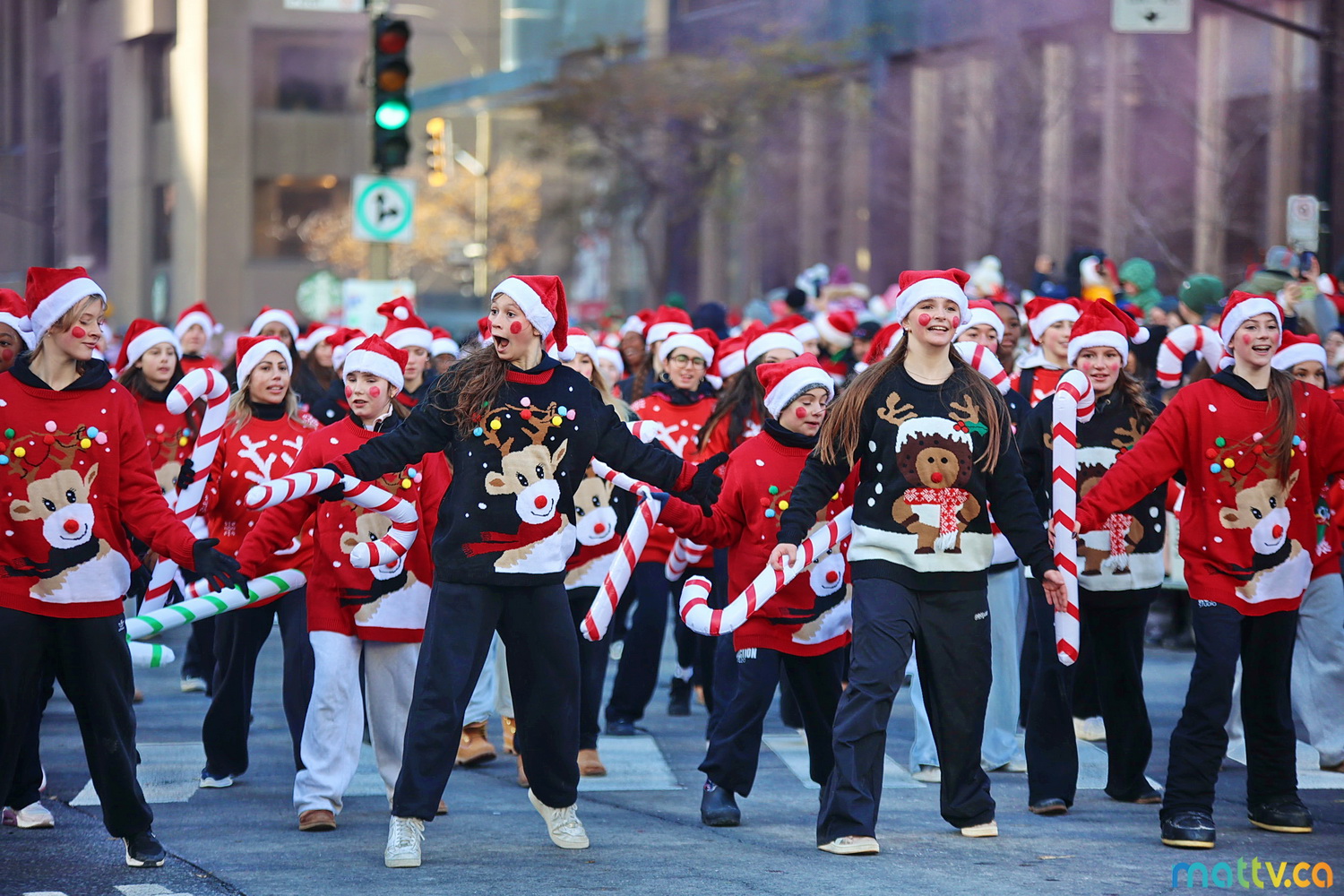 Dès notre arrivée, le centre-ville vibrait au rythme de la musique, des couleurs et de l’excitation générale. Un immense merci à Tim Hortons pour le chocolat chaud qui a ajouté une touche de réconfort, le parfait réconfort pour patienter avant le début des festivités ! et à Montréal centre-ville pour les chapeaux du Père Noël offerts.