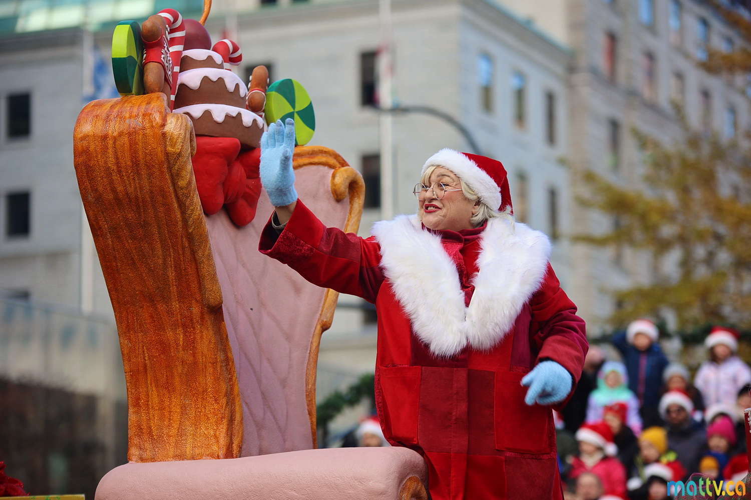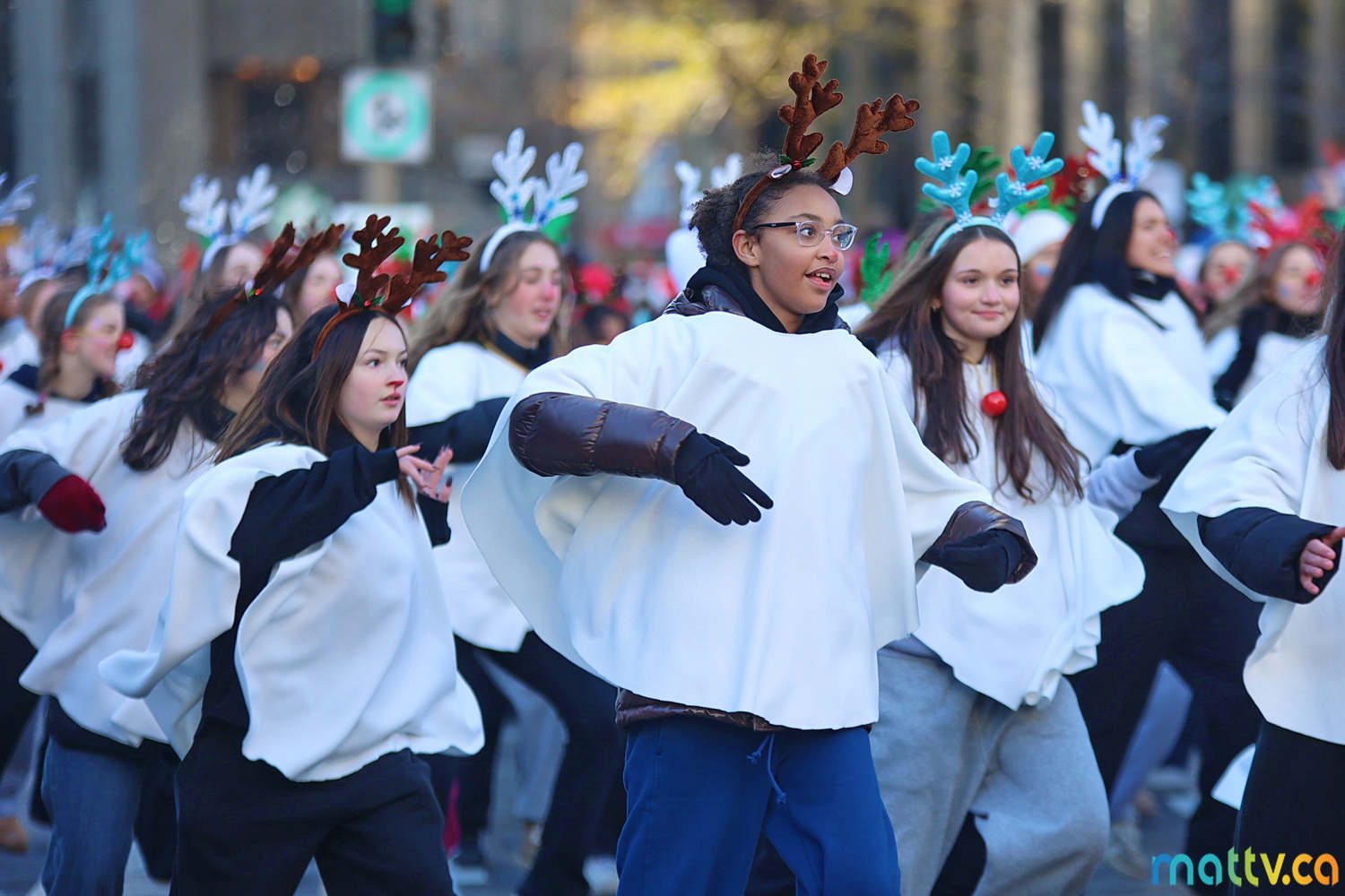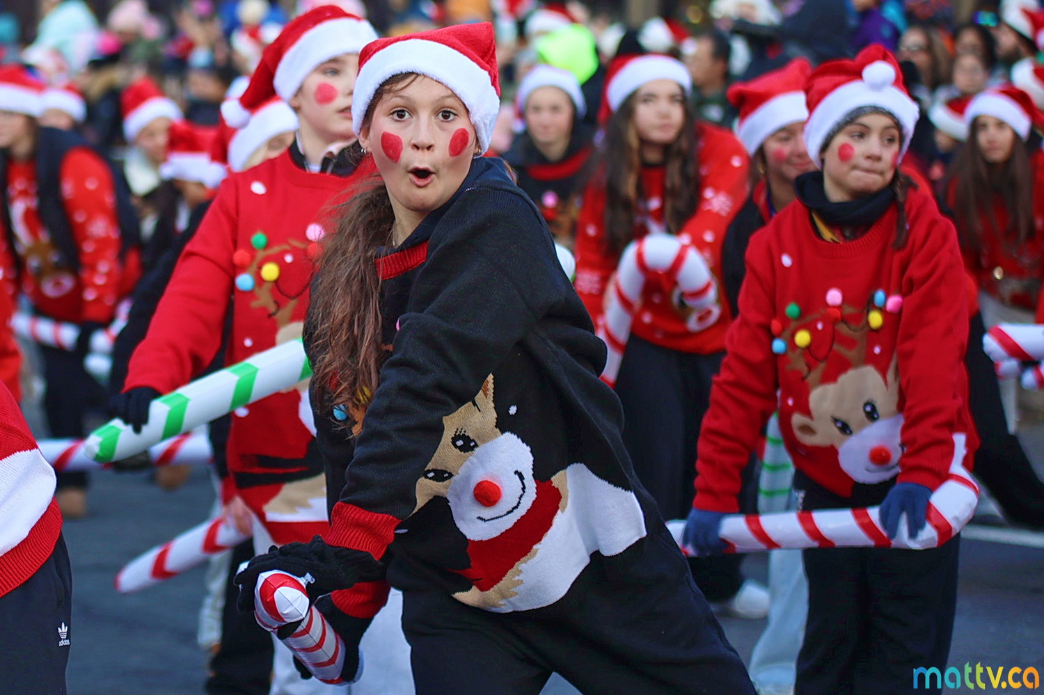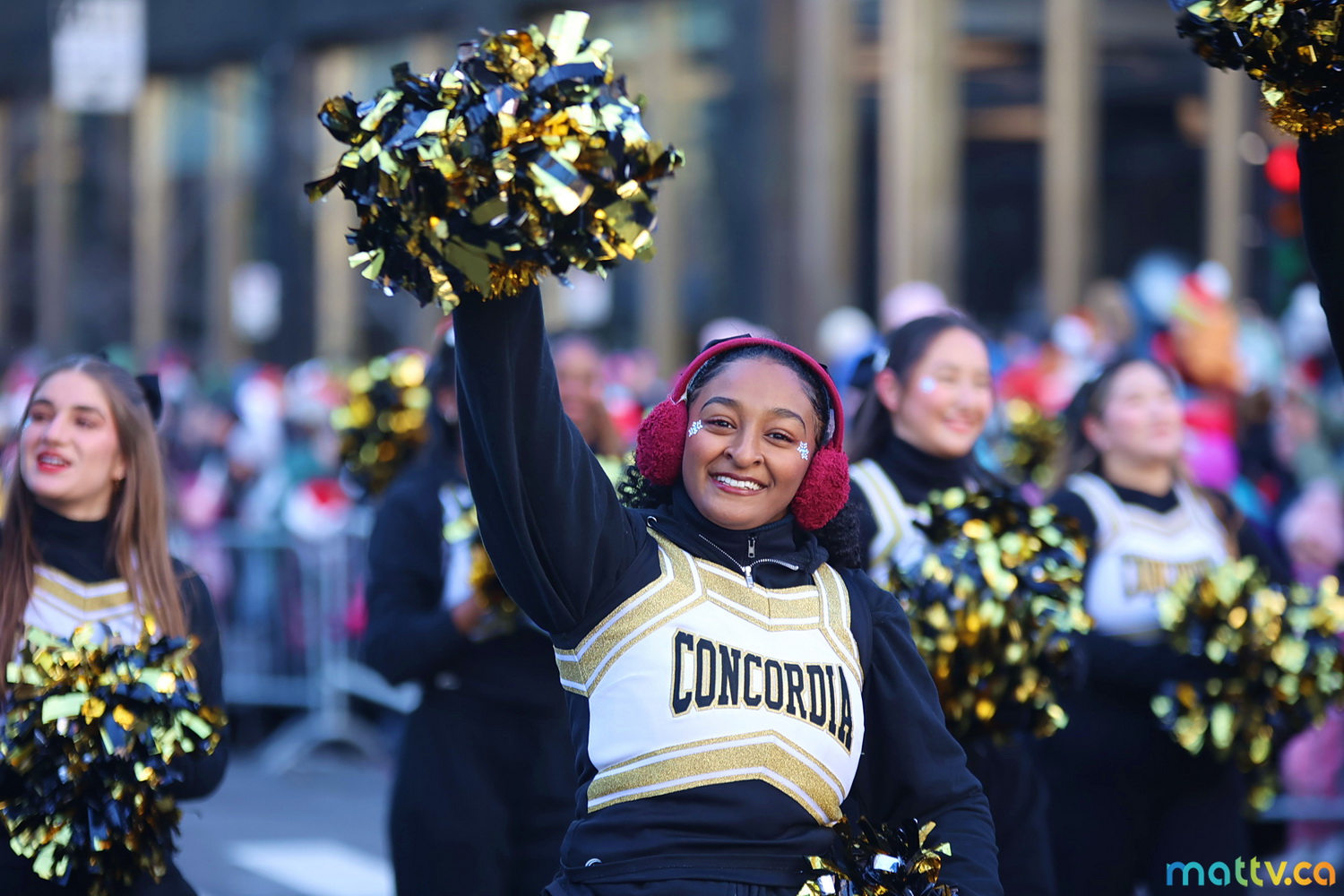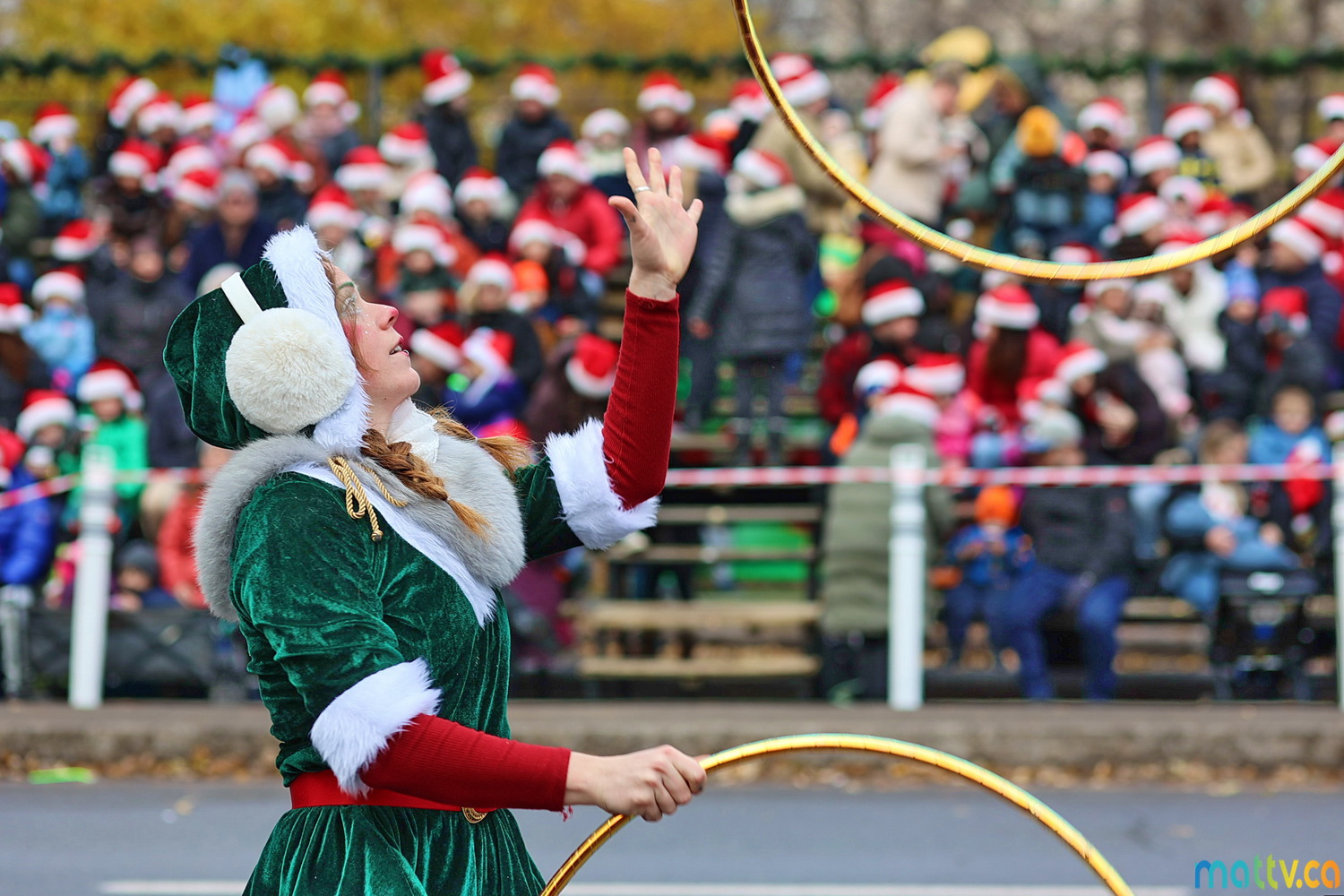 Dès notre arrivée, le centre-ville vibrait au rythme de la musique, des couleurs et de l’excitation générale. Un immense merci à Tim Hortons pour le chocolat chaud qui a ajouté une touche de réconfort, le parfait réconfort pour patienter avant le début des festivités ! et à Montréal centre-ville pour les chapeaux du Père Noël offerts.