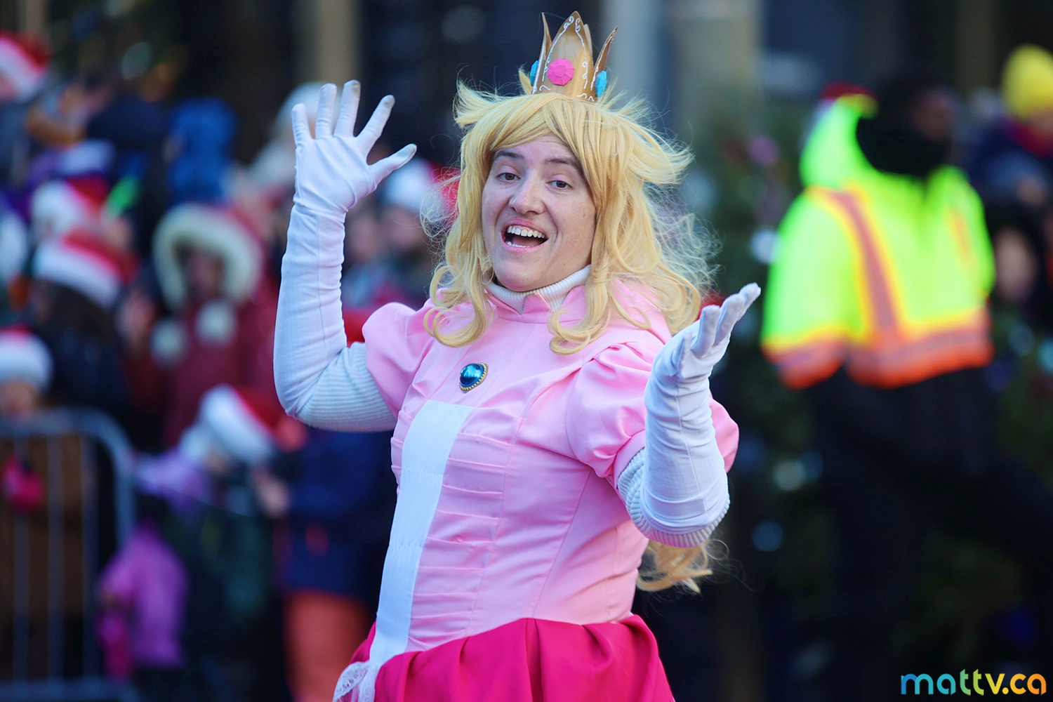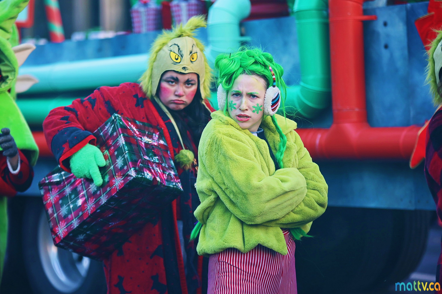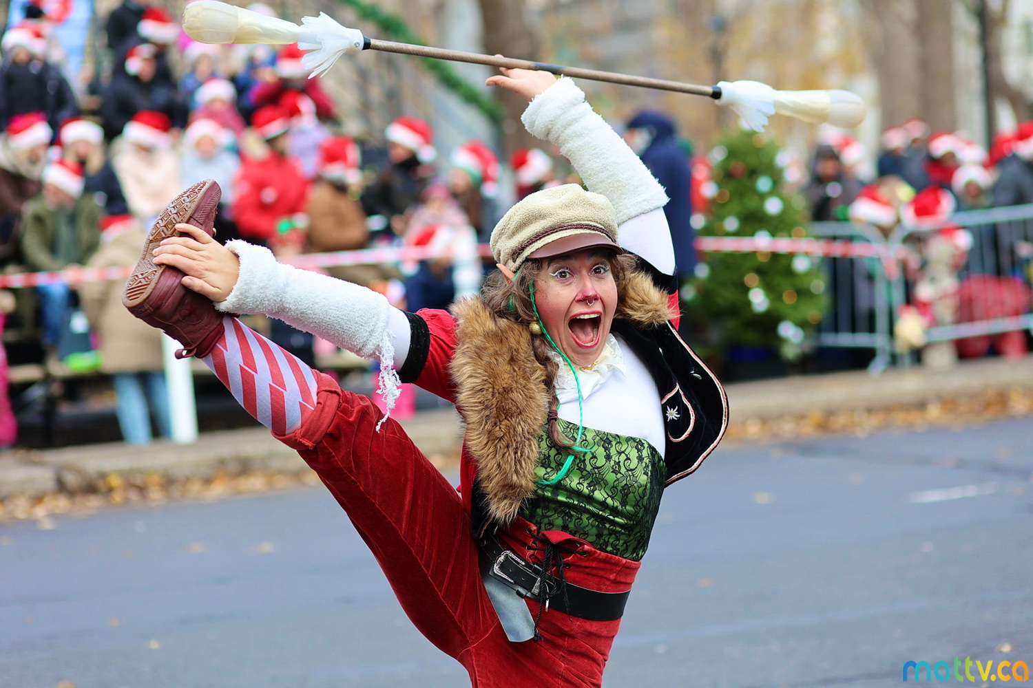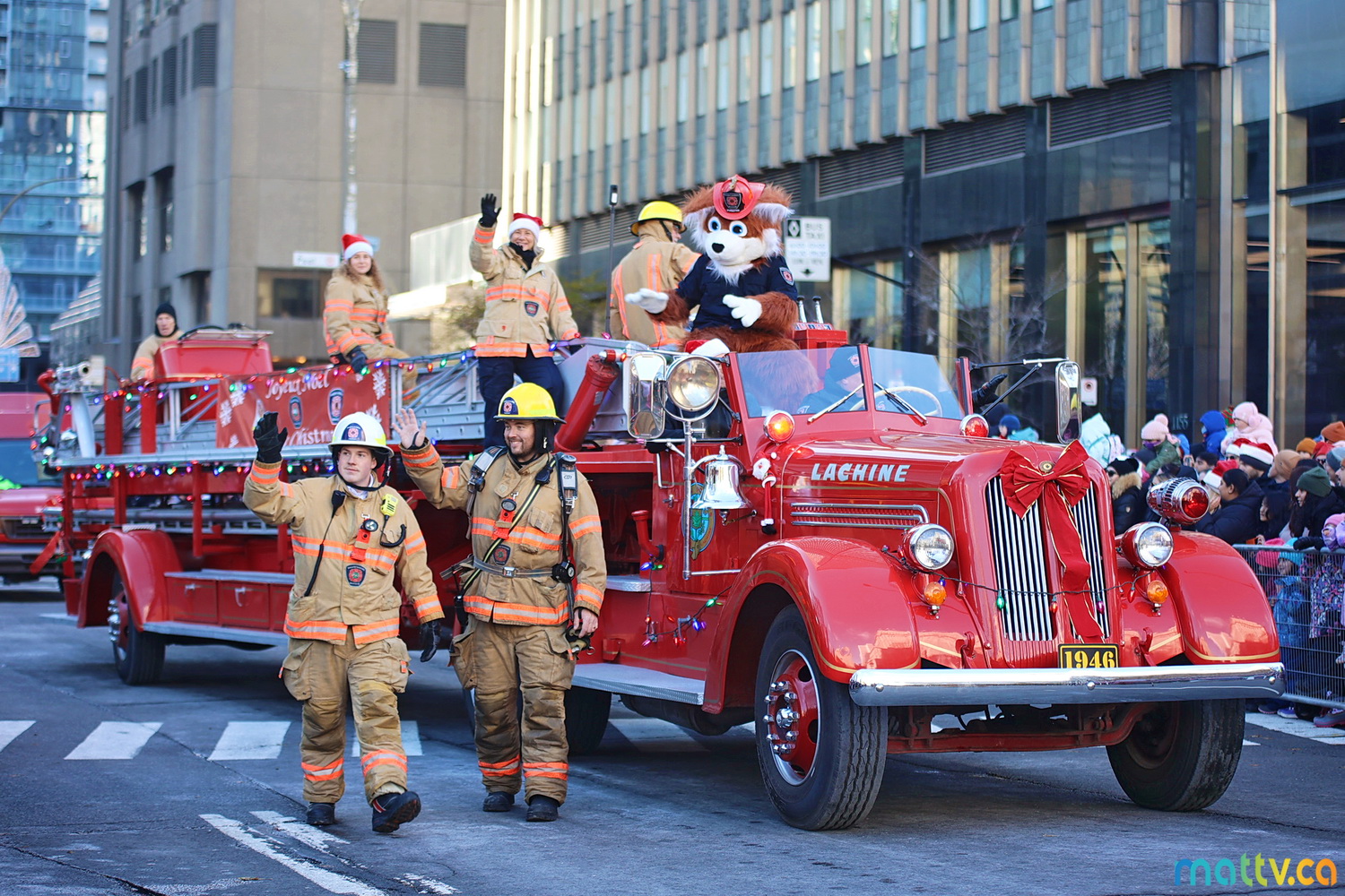 Dès notre arrivée, le centre-ville vibrait au rythme de la musique, des couleurs et de l’excitation générale. Un immense merci à Tim Hortons pour le chocolat chaud qui a ajouté une touche de réconfort, le parfait réconfort pour patienter avant le début des festivités ! et à Montréal centre-ville pour les chapeaux du Père Noël offerts.