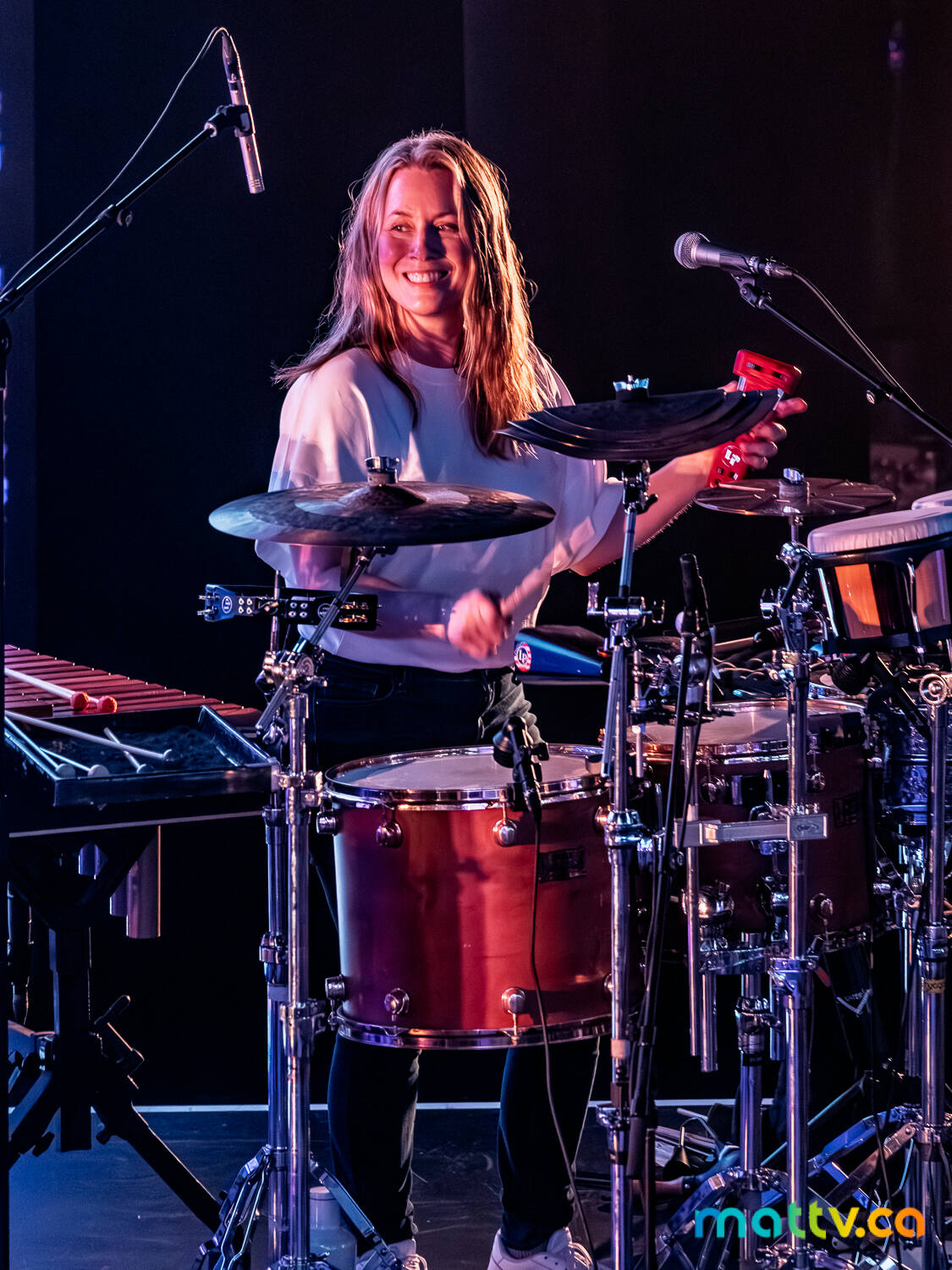 La première chanson, Party mix, lance aussi bien l’album que le spectacle. La basse de Pierre-Luc Boisvert combinée à la batterie de Charles Dubreuil fait à nouveau son effet sur ce morceau qui invite à la danse et ce, sans ambiguïtés.