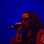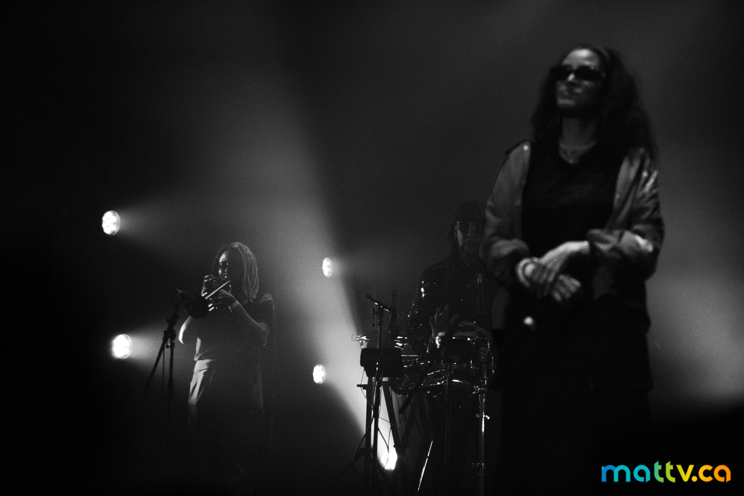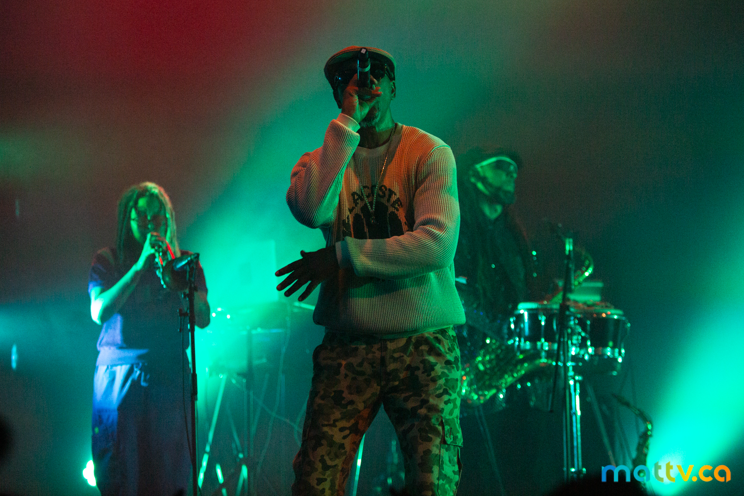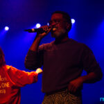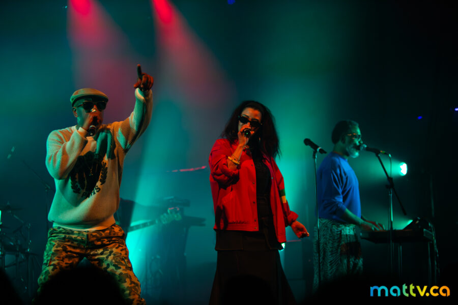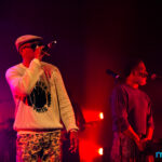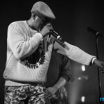 Les uns après les autres, derrière les rideaux rouges, dans le chahut de la salle, Ishmael « Butterfly » Butler, Mariana « Ladybug Mecca » Vieira et Craig « Doodlebug » Irving marchent d’un pas assuré sur la scène, en rappant les mots que l’on avait tous en boucle dans la tête. Butterfly, dans son long trench, rythme les rimes rapides en jouant de son sampler. Ladybug Mecca, en veston rouge, lâche un rap plus brut, tout en nonchalance ; son nom crié résonne dans la salle. Il ne faut pas oublier Doodlebug qui arbore fièrement sa casquette : son rap aux mots plus graves et tranchés vient arrondir les angles — ou les affûter, je ne saurais dire — mais à eux trois, la pièce est parfaite.