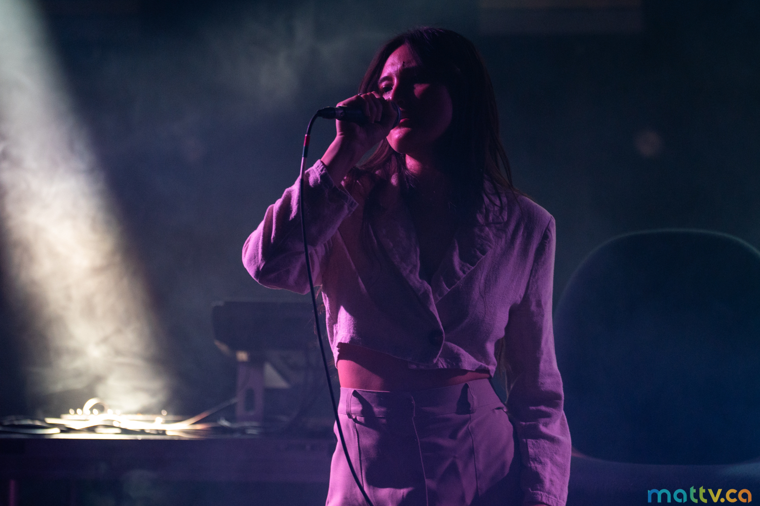 Le spectacle s’est ouvert avec le duo derrière un rideau de lumière bleue, ce qui donnait un caractère encore plus vaporeux à leur musique et nous permettait de nous immiscer complètement dans leur univers. Elles ont d’ailleurs ouvert le spectacle avec la même chanson qui ouvre leur premier album, Elephant. On sent tout de suite la nostalgie s’installer. Les gens se laissaient bercer par les mélodies électro-pop du duo et étaient presque transis par leur musicalité très vibey. C’était un moment très surréel, on ne faisait qu’un avec ces chansons qu’on connaît tous par cœur.