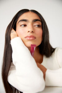 Je recommanderais justement d’essayer notre tache pour les lèvres peel-off. C’est un produit très amusant à utiliser, avec un résultat longue tenue et des teintes très flatteuses. Il tient toute la journée pour les filles occupées au travail, mais reste aussi parfait pour une soirée entre amis.