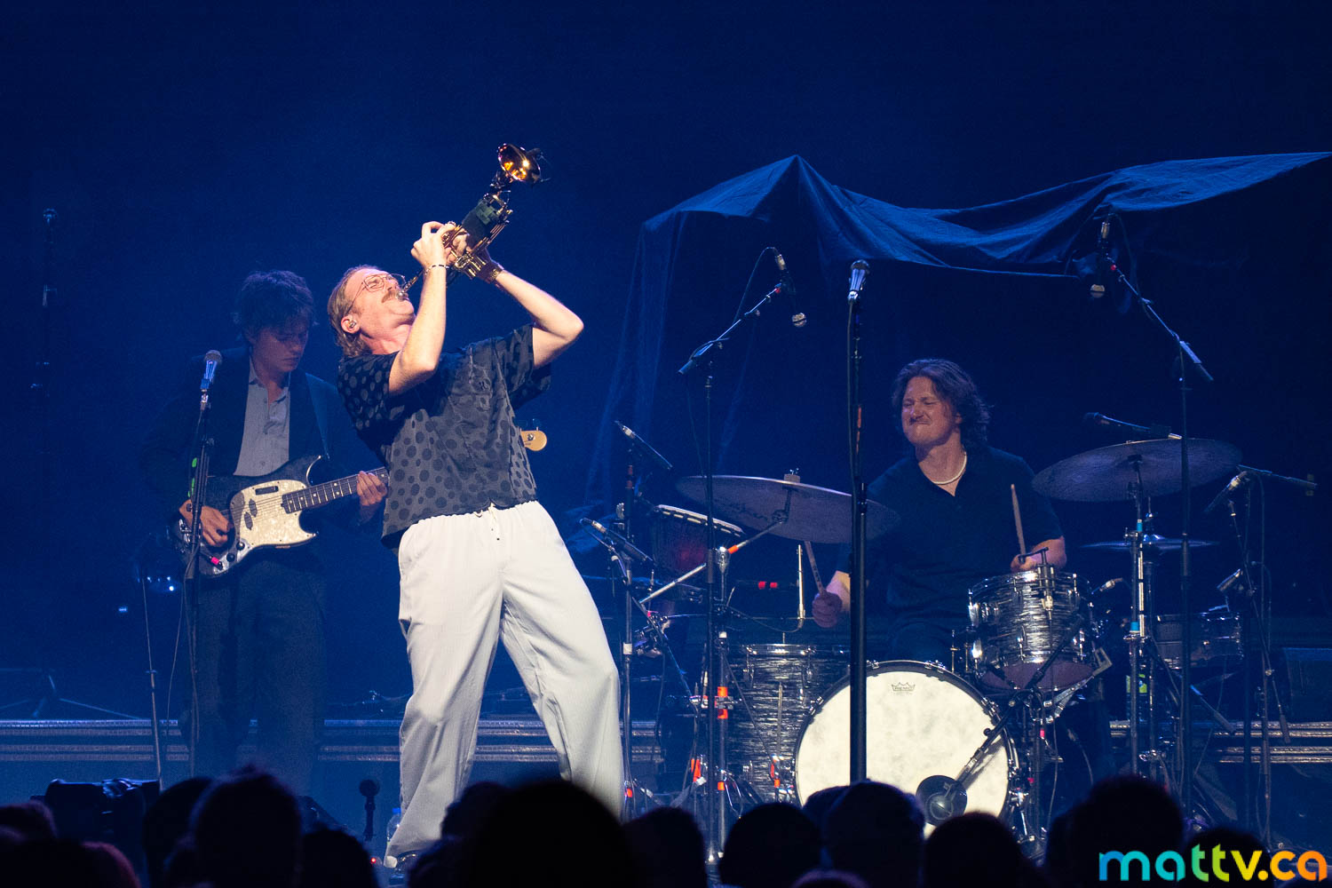 L’instrumentation restait fidèle à ce que l’on aime chez eux, des cordes dont des guitares acoustiques, contrebasse, banjo ainsi que clavier et percussion. Un moment fort de la soirée a été lorsque le groupe s’est trouvé au milieu du Centre Bell pour interpréter trois chansons dont la très belle Guiding Light. Moment plein de tendresse.