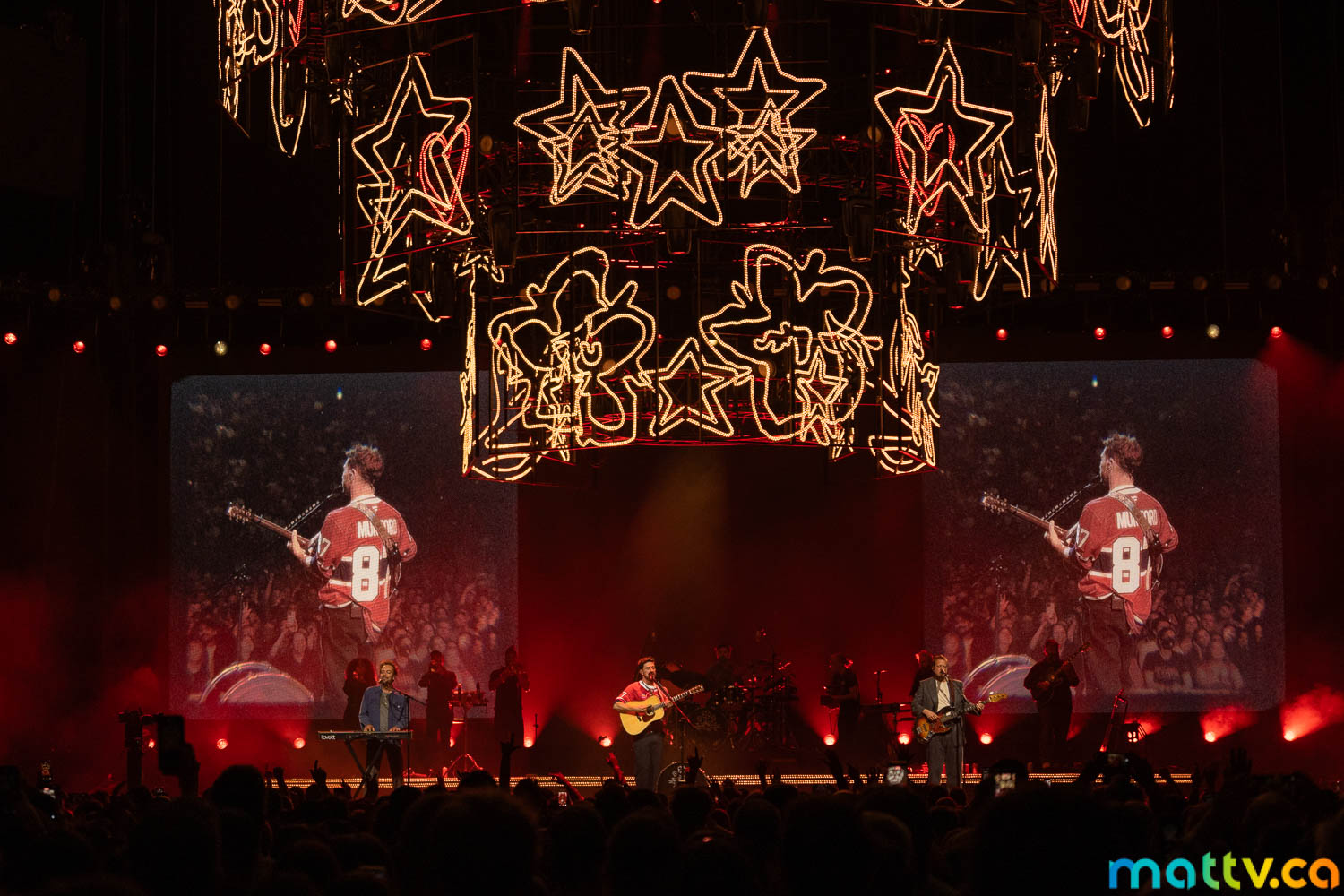 Quand les lumières se sont éteintes et que Marcus Mumford, Ben Lovett et Ted Dwane sont apparus, c’était clair, ce spectacle ne serait pas simplement un best-of. Oui, des classiques ont provoqué leur lot de chants en chœur, de sauts, de mains levées. Mais quand le groupe a introduit les nouveaux morceaux de Rushmere la salle a aussi répondu présente.