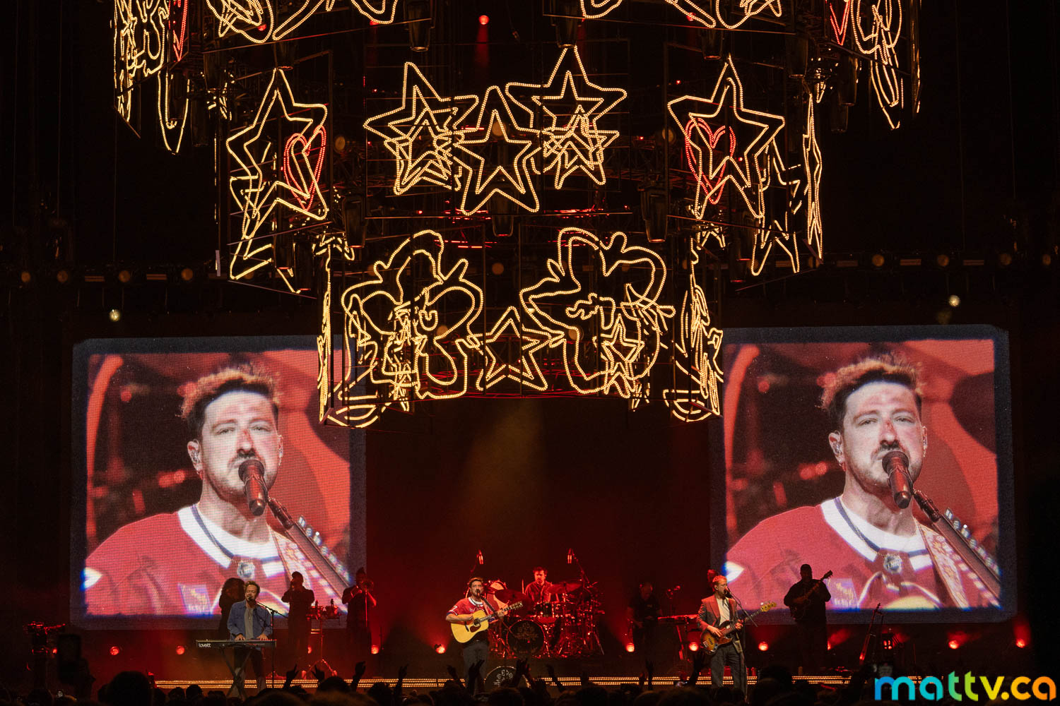 Au niveau du décor, la scène et les éclairages étaient sobres. Au dessus du groupe, une immense structure circulaire descendait du plafond. Des étoiles, cœurs, fleurs et colombes scintillaient tantôt jaune, rouge ou orange. C’est durant la chanson Believe que l’on a pu apprécier pour la première fois cet ajout. La salle s’est également illuminée de milliers de téléphones portables transformant le Centre Bell en une mer de lumières scintillantes. Durant la chanson Truth, tirée du dernier album, des flames se sont élevées sur scène.