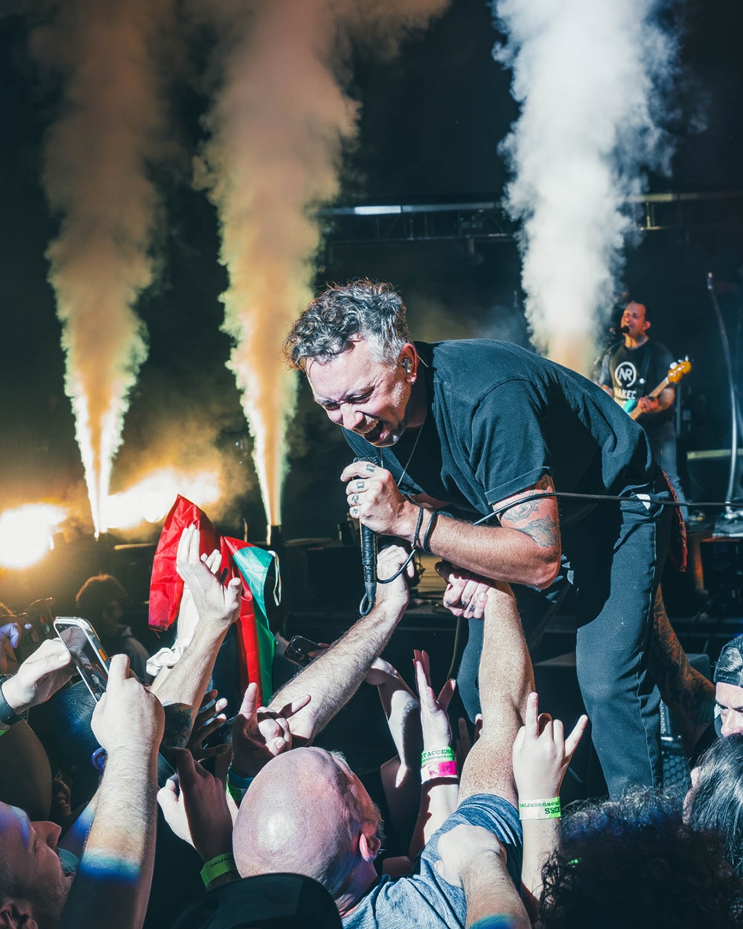 Rise Against enchaîne morceau après morceau qui, pour la plupart ici, font acte de résistance. Chaque accord, chaque saturation et cri du chanteur résonne en hymne suivi par la foule à l’unisson. Venant de la scène Hardcore et Punk Rock de Chicago, tout ça n’est pas anodin. Le micro tourne en lasso, la politique se chante au mégaphone, le punk perdure bien à sa manière même au travers d’autres influences.