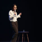 La soirée s’ouvre avec Jessica Chartrand, une découverte pour moi et toute une. Dès ses premières minutes, elle installe son univers en abordant avec beaucoup de mordant le service à la clientèle de nouvelle génération. Ces jeunes qui n’aiment pas travailler, ceux pour qui rien n’est grave, les gens non rigides qui flottent un peu dans la vie… tout y passe, avec une précision délicieuse.