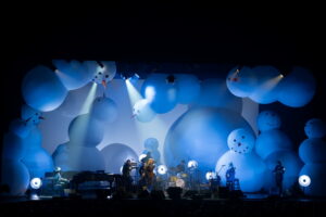 Le spectacle s’est ouvert sur des moments marquants des années antérieures, avant de nous présenter les deux animateurs de la soirée, Ariane Moffatt et Pierre Lapointe, devant l’amphithéâtre complètement vide si ce n’est que pour les techniciens. Ces derniers ont été décorés par la France le 24 février dernier, et cela a été souligné savamment par Patrice Michaud. Tous les textes récités, toutes les chansons chantées ont été choisis pour trouver écho dans le contexte actuel. C’est pourquoi, dès le départ, on a pu entendre Fred Pellerin nous parler de la fin du monde tel qu’on le connaissait. On a pu remarquer aussi que le spectacle a offert une diversité, autant en terme de couleur de peau que des personnalités présentées, ce qui a offert un baume en ce moment, alors que la société milite contre le racisme systémique et afin d’offrir une plus grande égalité dans la représentation des minorités visibles dans les arts en général. D’ailleurs, la chanson Les poings ouverts de Louis-Jean Cormier est venue souligner la présence du racisme au Québec et l’importance de le combattre.