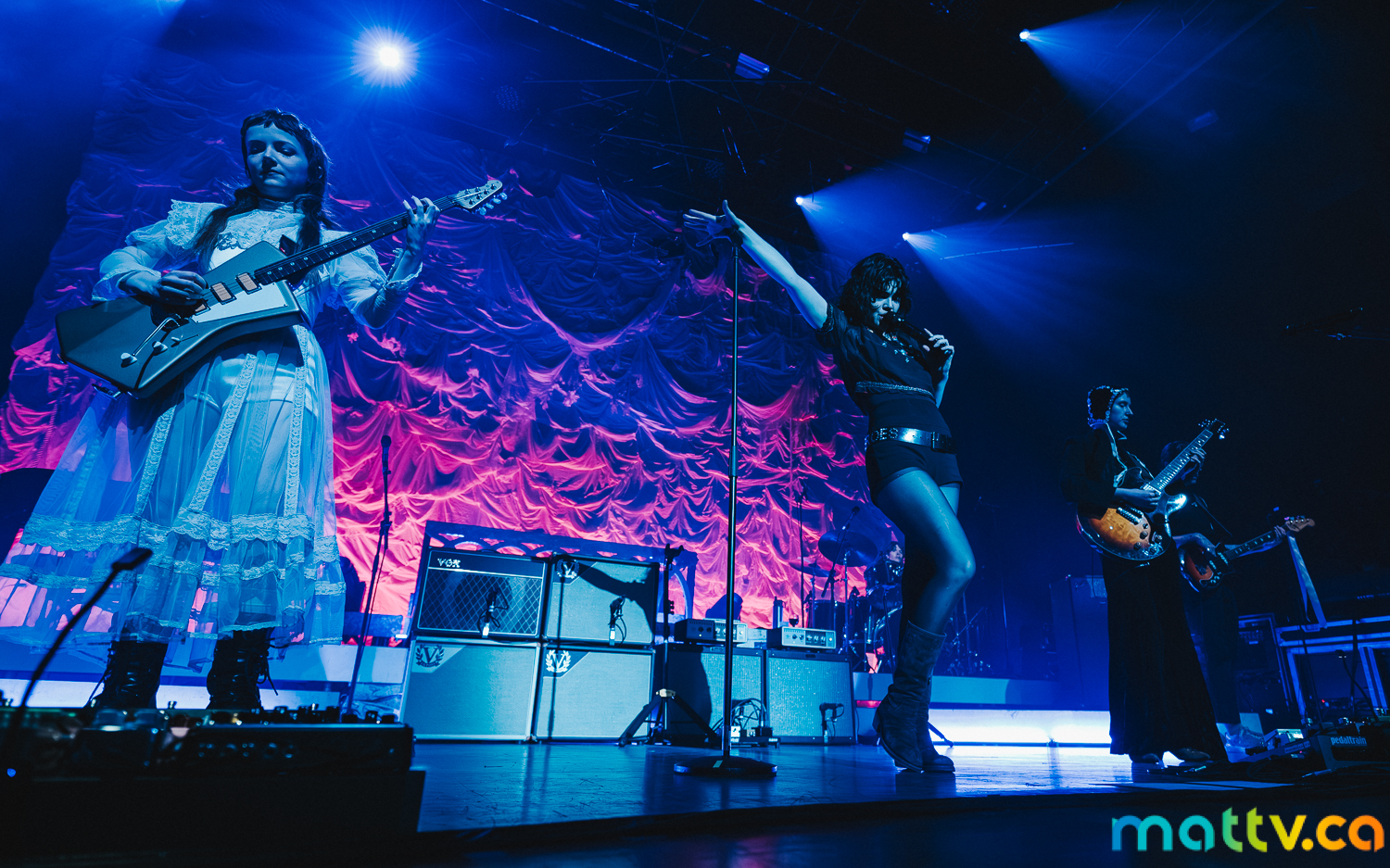 L’énergie sur la scène du MTELUS est remarquable; c’est une de ces frénésie totale à laquelle on assiste rarement. Le groupe joue d’un style baroque, et crée un univers exubérant, à peine assez large pour contenir toute leur personnalité. La foule s’accorde avec cet univers, et se laisse aller parfaitement à celui-ci. On remarque que dans le public, on admire ces femmes qui, sur scène, font de la féminité un pouvoir.
